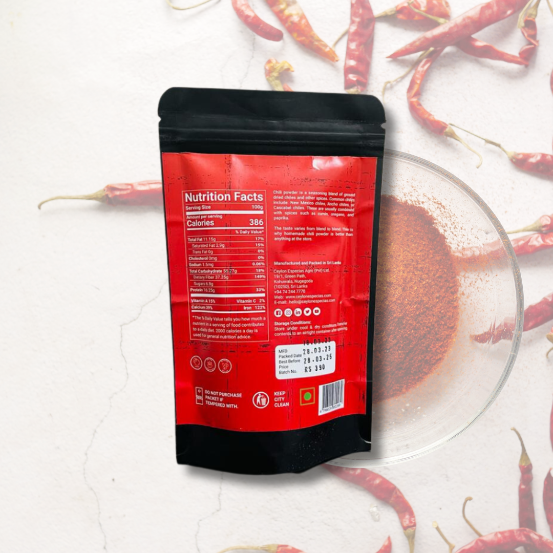 Tantalize your taste buds with Ceylon Especias Chilli Powder! Our Sri Lankan Chilli Powder adds a bold, vibrant flavor to your dishes that will delight and excite your palate. With its intense spiciness and delicate aroma, it's the perfect choice for any spiced-up dish.